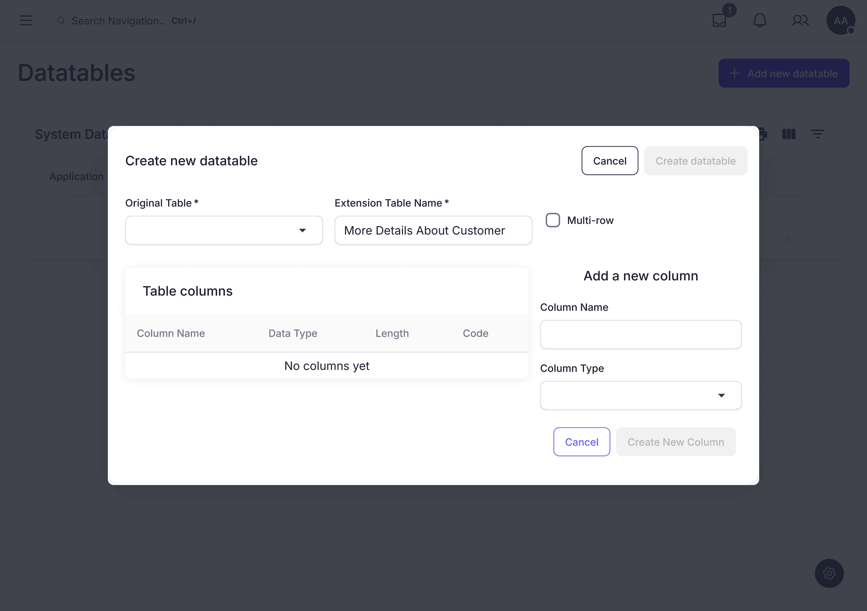 We provide you with this flexibility without compromising your user experience. With our DATATABLES feature you can add more fields about your entities without breaking a sweat.