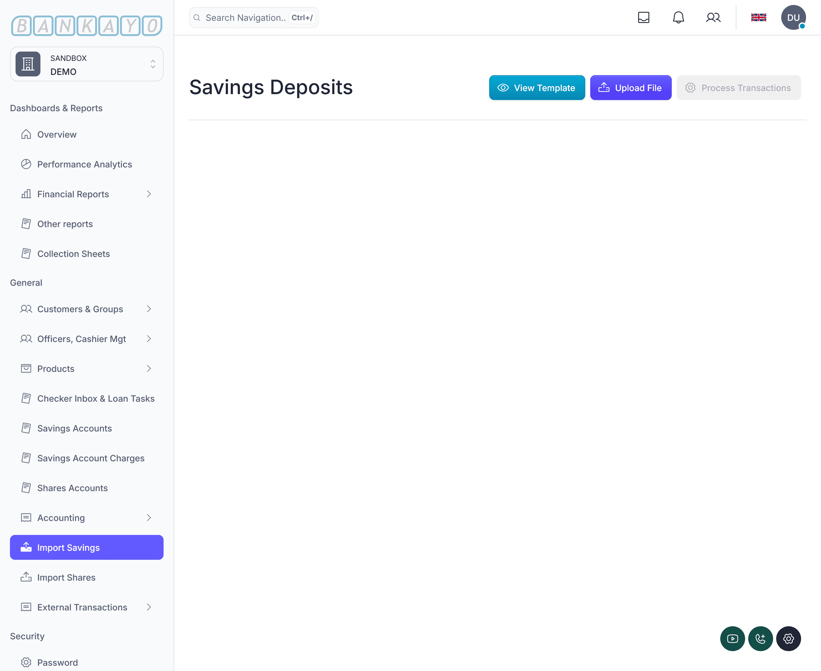 Intuitive tools for importation of Savings, Shares, Loan Payments, Customers with progress indicators